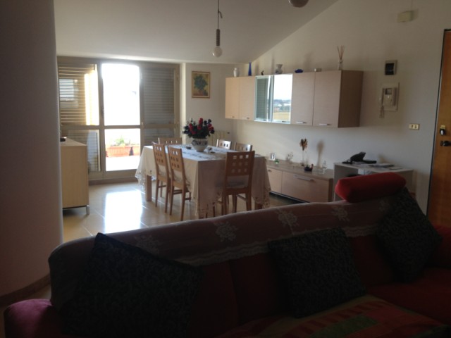 A Lanciano, in zona residenziale, proponiamo un bell'attico, in palazzina tranquilla e di recente ristrutturazione. L'immobile sviluppa 90 mq di superficie cosi suddivisa: soggiorno; cucina abitabile; 2 ampie camere; bagno; doppio terrazzo e balcone. Entrando, notiamo la notevole luminosità , data dalle ampie finestre, e la sensazione di calore, trasmessa dalla giusta dimensione di questo ottimo prodotto. I due terrazzi, esposti sulla parte frontale e sul retro, completano questo apprezzabile appartamento. AFFARE_____ENGLISH_____In Lanciano, residential zone, we propose a beautiful attic apartment, in a quite and recently restored building. The apartment, of 90 sq.mt, is composed of: living room, kitchen-diner, two spacious rooms, bathroom, double terrace and a balcony. The apartment has perfect dimensions and large fixtures, which give it brightness. The two terraces, situated on the front and on the back of the apartment, make this attic really special and cozy. REAL BARGAIN! |