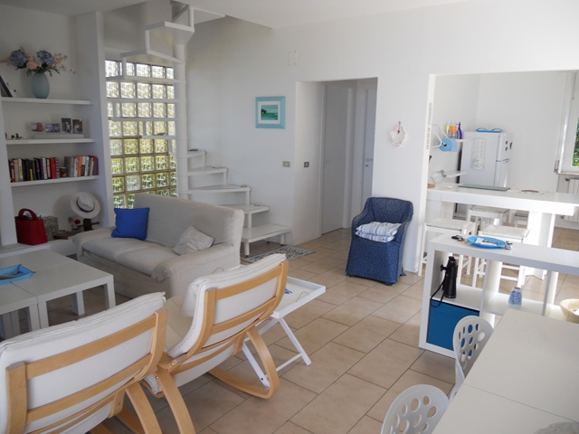 Villa su due piani con ampio salotto luminoso. Dispone di un grande giardino che, affaciandosi sul mare, offre una splendida vista. Ideale per le calde giornate d’estate grazie agli alti alberi che la circondano, che danno al tempo stesso frescura e intimità . Possibilità di realizzare una taverna sfruttando lo spazio esterno presente al piano terra.___________ ENGLISH __________ Two levels villa with a wide and bright living room. It has a large garden that, overlooking the sea, offers a wonderful vista. Ideal for warm days of summer thanks to the surrounding high trees, that give you coolness and privacy at the same time. Possibility to enlarge the property using the external space at the ground floor.